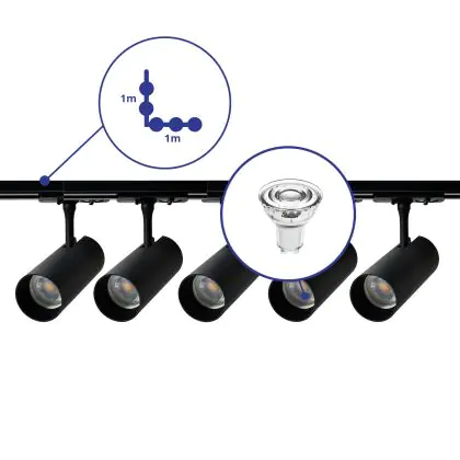 | Herstellername | Complete L shaped 1-Phase Track Set Black incl. 5x Spot fixture + GU10 2700K 3W Dim – 1 x 1 meter i | |