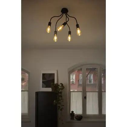 In die fünfflammige Deckenleuchte von Ledvance können Sie alle gängigen Lampen mit E27-Sockel integrieren. Wir empfehlen Ihnen natürlich kostensparende und effiziente LEDs. Besonders beliebt sind hierbei Filament LED-Lampen, die dank ihren dekorativen "Glühfäden" perfekt zum Vintage-Design der Leuchte passen.