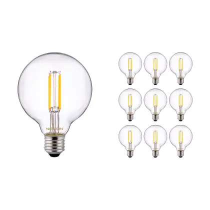 Die Mehrfachpackung 10x Noxion Pro Classic LED E27 Globe Fadenlampe Klar 95mm 8W 806lm - 827 Extra Warmweiß | Dimmbar - Ersatz für 60W ist eine effiziente E27 LED-Lampe mit Retrodesign und der perfekte Ersatz für Ihre konventionellen 60W Lampen mit E27. Zudem strahlt sie Licht in der Farbtemperatur 2700K - Extra Warmweiß aus und punktet durch eine lange Lebensdauer.