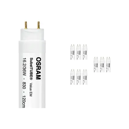 Beschreibung Mehrfachpackung 10x Osram SubstiTUBE LED T8 Value (EM Mains) Standard Output 16.2W 1530lm - 830 Warmweiß | 120cm - Ersatz für 36W