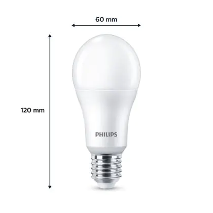 Die Mehrfachpackung 2x Philips Glühbirne LED E27 Birne Matt 13W 1521lm - 827 Extra Warmweiß ist eine effiziente E27 LED-Lampe und der perfekte Ersatz für Ihre konventionellen W Lampen mit E27-Sockel. Zudem strahlt sie Licht in der Farbtemperatur 2700K - Extra Warmweiß aus und punktet durch eine lange Lebensdauer.