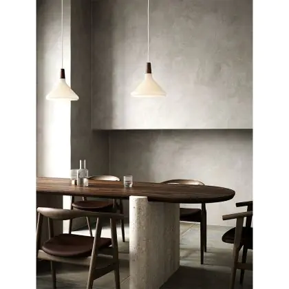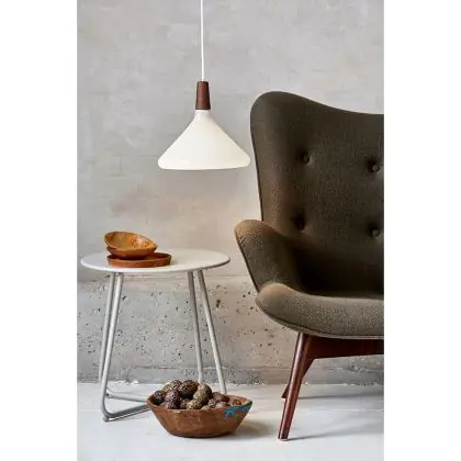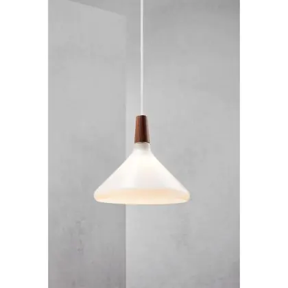 Die Nordlux Pendelleuchte aus der Modellreihe Nori zeichnet sich durch ein modernes Design und einen schicken Materialmix aus. Der Lampenschirm besteht aus Glas. Das Markenzeichen der Modellserie ist die Holzspitze in geöltem Nussbaum. Hinweis: Die Leuchte kommt ohne Leuchtmittel daher - passende E27 LED-Lampen finden Sie jedoch in unserem Shop.