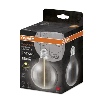 Die Osram Vintage 1906 LED E27 Special Fadenlampe Klar 2.2W Birne150lm - 827 Extra Warmweiß | Ersatz Für 15W ist eine effiziente E27 LED-Lampe mit Retrodesign und der perfekte Ersatz für Ihre konventionellen 15W Lampen mit E27. Zudem strahlt sie Licht in der Farbtemperatur 2700K - Extra Warmweiß aus und punktet durch eine lange Lebensdauer.