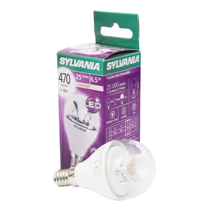 Die Sylvania ToLEDo Ball E14 Klar zeichnet sich durch einen geringen Stromverbrauch von nur 6,5 Watt aus. Dies ermöglicht Ihnen erhebliche Energieeinsparungen. Die LED hat einen E14-Sockel, sowie eine P45-Ballform, und spendet warmes Licht mit einer Farbtemperatur von 2.700 Kelvin.